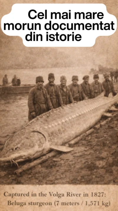 Cel mai mare morun documentat din istorie a fost prins în anul 1827, în fluviul Volga, și rămâne până astăzi cel mai mare pește de apă dulce consemnat în mod credibil. Conform surselor istorice și literaturii de specialitate dedicate sturionilor, acest exemplar de morun (Huso huso) avea o lungime de aproximativ 7 metri și o greutate estimată la circa 1.571 de kilograme, adică peste 1,5 tone. Dimensiunile sale depășesc orice captură modernă cunoscută și sunt citate constant în lucrări științifice și istorice care tratează fauna acvatică a bazinului caspic. Captura a avut loc într-o perioadă în care fluviile mari ale Europei și Asiei erau încă nefragmentate de baraje, iar sturionii puteau migra liber pe distanțe foarte mari. Morunul este o specie cu creștere extrem de lentă și cu o longevitate ridicată, iar exemplarele de dimensiuni excepționale apar doar după zeci sau chiar peste o sută de ani. În cazul acestui morun din Volga, vârsta a fost estimată la peste 100 de ani, pe baza ritmului de creștere specific speciei. În secolele al XIX-lea și începutul secolului XX, capturile de moruni foarte mari erau relativ frecvente în marile fluvii care se varsă în Marea Caspică și Marea Neagră. În bazinul Volgăi au fost documentate mai multe capturi de peste 1.000 de kilograme, iar în Dunăre, mai ales în sectorul inferior, au fost prinse exemplare de 800–1.000 de kilograme. Cu toate acestea, niciuna dintre aceste capturi nu a egalat dimensiunile morunului prins în 1827. Morunul este recunoscut drept cel mai mare sturion existent și unul dintre cei mai mari pești de apă dulce din lume. Dimensiunile record din trecut reflectă o perioadă în care ecosistemele acvatice erau mult mai puțin afectate de activitatea umană. Construirea barajelor, poluarea și pescuitul excesiv au dus, în timp, la prăbușirea populațiilor de sturioni și la dispariția exemplarelor uriașe. Astăzi, morunul este clasificat ca specie critic periclitată, iar pescuitul său este interzis sau strict reglementat în majoritatea țărilor. Existența unor capturi de asemenea dimensiuni este imposibilă în condițiile actuale, iar recordul din 1827 rămâne un reper istoric al unei lumi naturale care nu mai poate fi recreată.